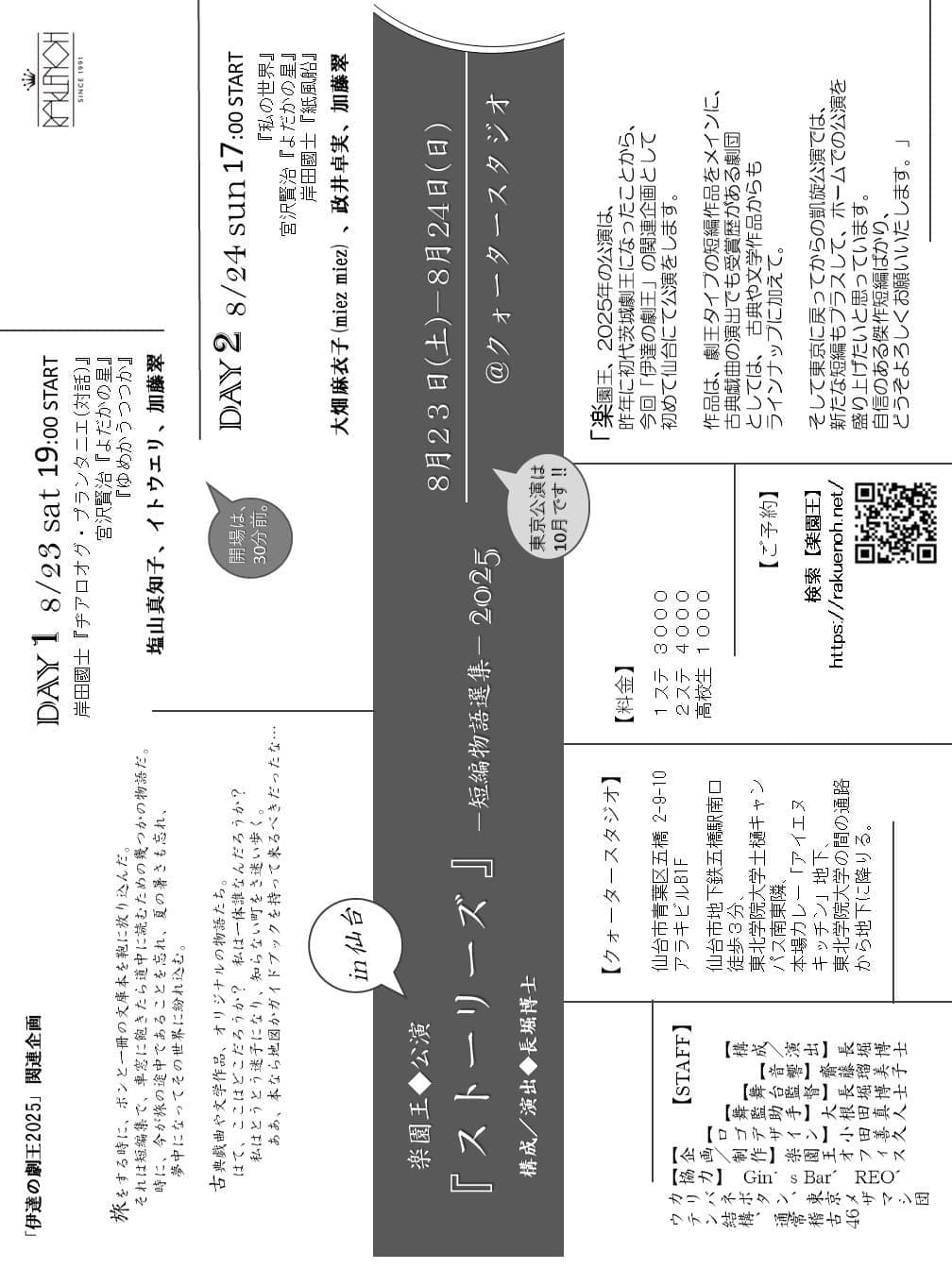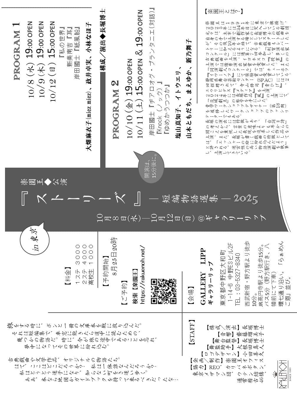 【追加公演決定‼】楽園王『ストーリーズ』、完売回が増えてきた週末の2日間(両日ともプログラム2)に、1ステずつ「追加ステージ」を行うことに致しました。